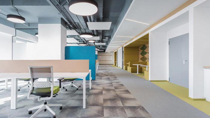 辦公區(qū)域的設(shè)計:設(shè)計師在設(shè)計的時候,將其安置在一個大的開放性空間之中,在設(shè)計師看來開放式設(shè)計是辦公的一個主流設(shè)計趨勢,設(shè)計師在設(shè)計中刪繁就簡,將不必要的東西加以刪除與修改,還員工一個極簡的辦公空間,將空間的束縛歸于無。