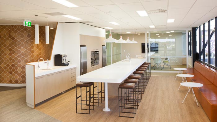 茶水間的設(shè)計(jì):?在茶水間的設(shè)計(jì)上,設(shè)計(jì)師一直追求的就是空間之間的相互結(jié)合,故此茶水間的位置十分重要,設(shè)計(jì)師將其安置在空間的一側(cè)靠近墻壁的區(qū)域,以此釋放更多的空間做為休息區(qū)之用,此處的休息區(qū)呈長方形分布,讓員工可以在這里休息、交流、玩耍。