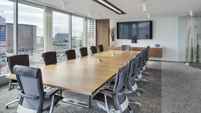 會議室的設(shè)計:通過以上的設(shè)計介紹,可以知道會議室位于接待空間的內(nèi)側(cè),且是一個獨立的空間,會議空間的設(shè)計以簡潔、明亮為主,這樣設(shè)計的目的,就是希望將光更好的加以闡述,光日復(fù)一日、從不間斷,這也是設(shè)計師希望通過設(shè)計傳達的信息,希望企業(yè)可以長盛不衰。