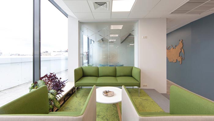 進(jìn)門區(qū)域的設(shè)計(jì):客戶進(jìn)入后看到的一處生機(jī)勃勃的空間,這也這是設(shè)計(jì)師特意為之,在設(shè)計(jì)師看來不管是什么,第一印象都十分重要,故此設(shè)計(jì)師希望通過生機(jī)勃勃的進(jìn)門區(qū)域,給客戶留下一個(gè)不錯(cuò)的第一印象,同時(shí)生機(jī)勃勃也在一定程度上展示企業(yè)蓬勃發(fā)展的前景。