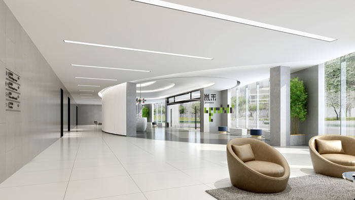 醫(yī)藥辦公室一樓大廳設(shè)計:整個大廳給人的第一感覺就是——光,光為生命的孕育提供了必要的基礎(chǔ),在這里企業(yè)為生命的保障提供強大的醫(yī)藥基礎(chǔ),兩者之間都是為了生命的安穩(wěn)、安全。