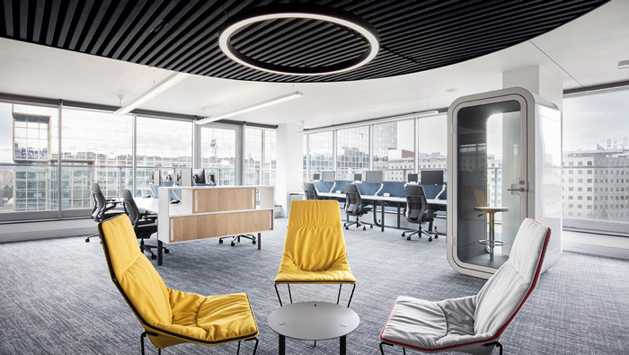 信托公司以信任委托為基礎(chǔ),設(shè)計師在辦公室設(shè)計中,以信任、現(xiàn)代化、簡潔為辦公室設(shè)計關(guān)鍵詞,目的就是希望營造一個以信任為基礎(chǔ)的辦公空間。