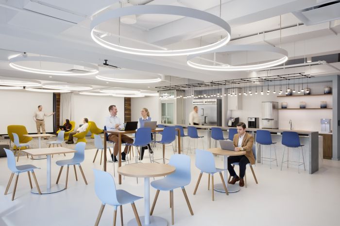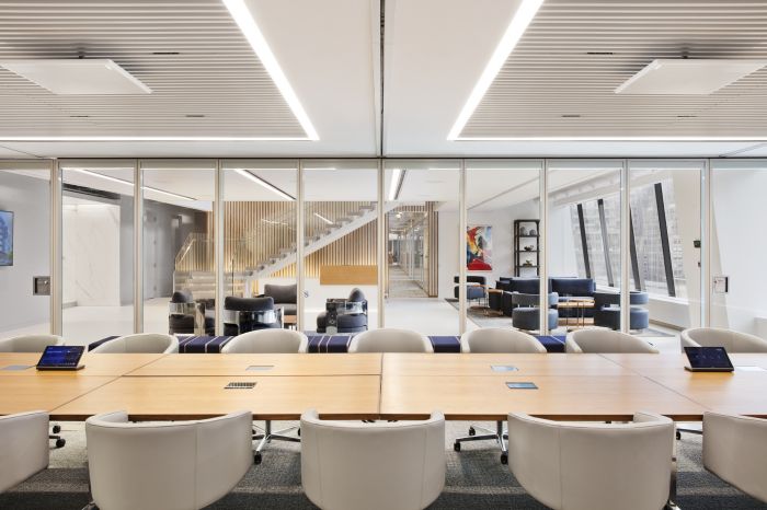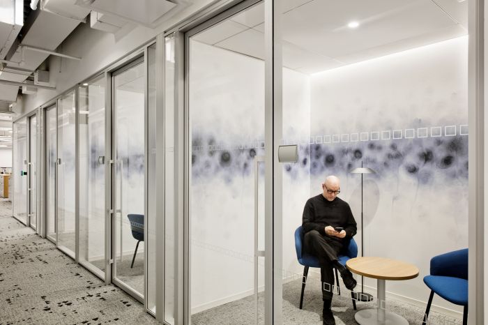 協(xié)作區(qū)域分布在辦公區(qū)和私人辦公室中,以創(chuàng)建通向多個(gè)體驗(yàn)區(qū)域的路線。這包括音樂(lè)室、冥想室和休息室等空間,所有空間都是為健康而設(shè)計(jì),旨在改善員工的工作方式。