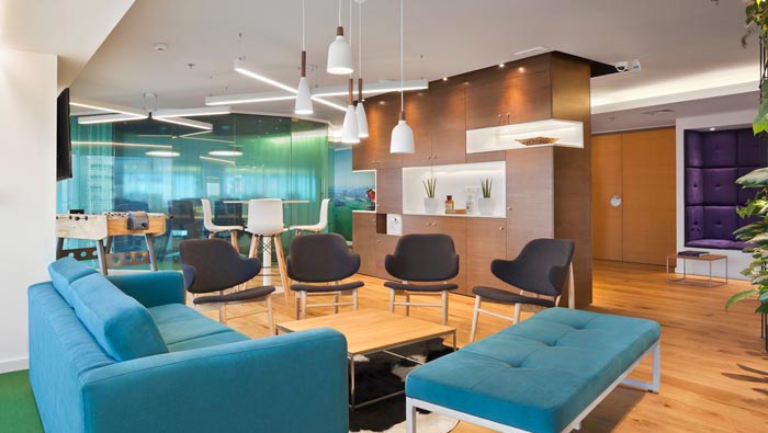 辦公區(qū)域的設(shè)計(jì):設(shè)計(jì)師在設(shè)計(jì)的時(shí)候,采用不規(guī)則的辦公布局,在設(shè)計(jì)師看來(lái)這樣的設(shè)計(jì)可以各取所長(zhǎng)、各補(bǔ)所短,在開(kāi)放空間布局的同時(shí),為每一個(gè)員工打造一個(gè)屬于自己的私人空間,不規(guī)則所打造的辦公空間,讓空間充滿了活力。