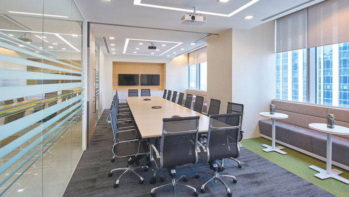 會議室的設(shè)計:此處結(jié)合了會議室與交流區(qū)域,這也是設(shè)計師偶然的突發(fā)奇想,窗邊的交流區(qū)域,在會議開展的時候可以容納更多的會議人員,在平時也可以做為與客戶之間的交流區(qū)域,設(shè)計師的設(shè)計理念就是處處都是實用的,處處都是一種生活的態(tài)度。