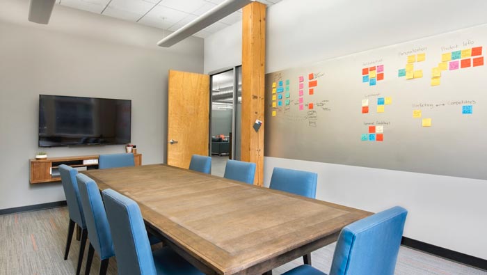 會議室的設(shè)計:設(shè)計師的重點在于釋放空間的壓力,也就是釋放更多的空白空間,以此在會議開展的時候為企業(yè)帶來更多的想象空間,想象空間就是希望讓大家靜下心來認真思考,同時也為大家提供了踱步的空間,希望通過動與靜之間的互換達到快速解決問題的作用。