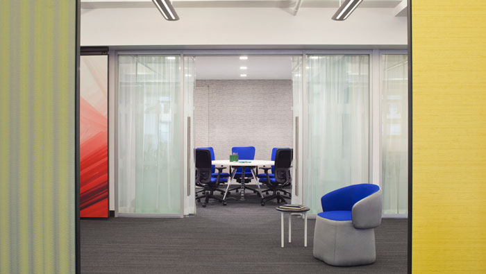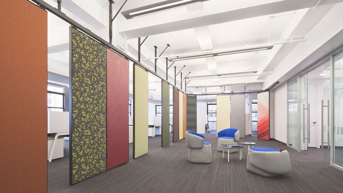 辦公區(qū)域的設(shè)計(jì):懸掛的隔斷如一扇扇門將辦公區(qū)域擋在視線之外,但懸掛的隔斷不是死的而是靈活的,一扇扇可拉可合,開放的辦公區(qū)加上半封閉的個(gè)人辦公區(qū),兩者之間形成一個(gè)很好的結(jié)合,這樣的設(shè)計(jì)旨在消除弊端,同時(shí)也在為企業(yè)營造利于發(fā)展的辦公新格局。