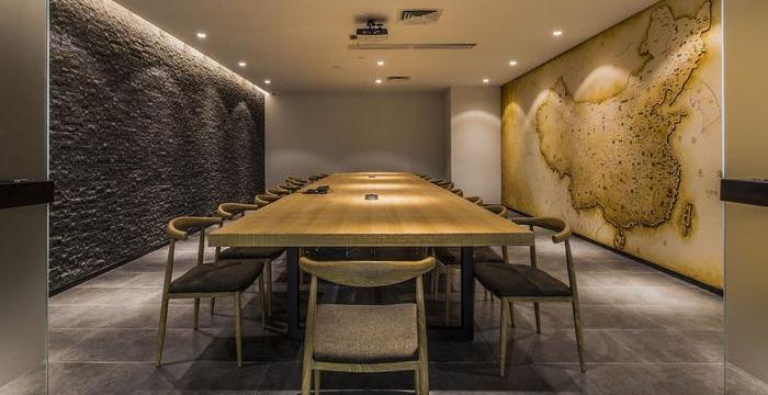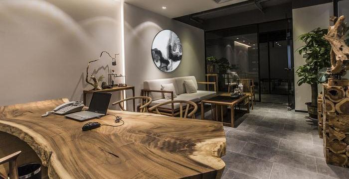 CEO辦公室非常簡潔??臻g風(fēng)格通過展示家具來突出。整個木制辦公桌與新的中國家具相呼應(yīng),而定制的黑色鐵板書架則極為現(xiàn)代。整個空間呈現(xiàn)出東方現(xiàn)代禪宗風(fēng)格的氛圍。