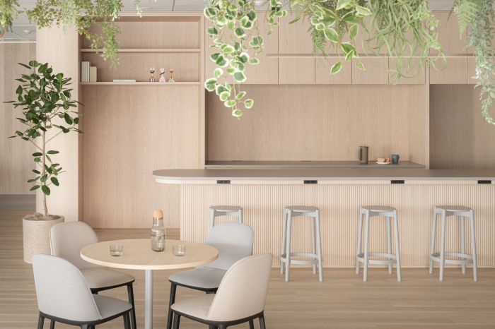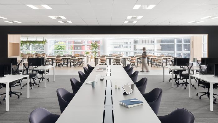 靠近街邊窗戶的區(qū)域,被設(shè)計成一個鼓勵快速會議和跨部門互動的空間。會議室是公司的形象,旨在表達(dá)企業(yè)的身份,將墻壁和天花板漆成企業(yè)色的弧形照明和生物群落相結(jié)合,以表達(dá)企業(yè)的進(jìn)步和速度。