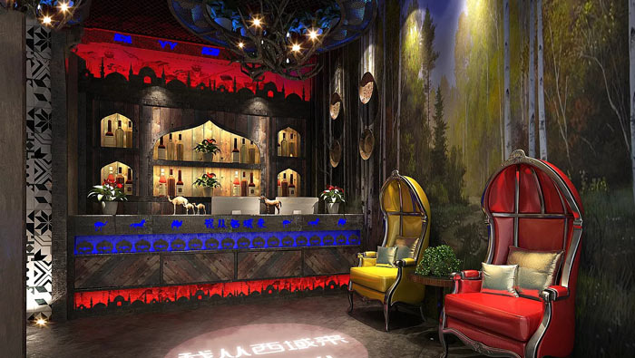 特色主題餐廳大廳設(shè)計(jì):整個(gè)空間給人的第一感覺就是異域的風(fēng)情,但這里最好的還是美食,設(shè)計(jì)師希望此處可以成為大家,了解新疆的一個(gè)窗口,讓此處成為記憶中的味道。