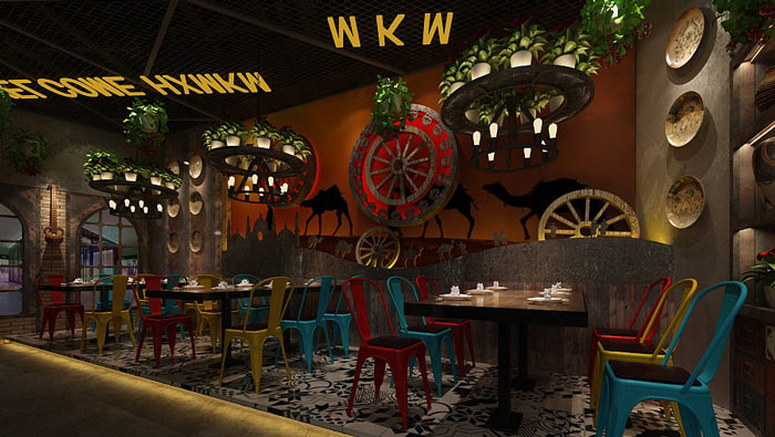 本次為特色主題餐廳裝修設(shè)計(jì)方案,餐廳的老板鐘情于西域風(fēng)情,故此在考察過新疆之后,就決定打造新疆風(fēng)情的主題餐廳,設(shè)計(jì)師在設(shè)計(jì)中以工業(yè)風(fēng)格為主基調(diào),搭配新疆元素,目的就是為了將其融合在整個(gè)空間設(shè)計(jì)之中,設(shè)計(jì)師要做的就是讓空間活起來,讓一切變的自然。