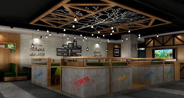 本次為川漁館裝修設計方案,在川漁館設計中,“川”字被賦予了獨特的屬性,之所以這樣設計是希望可以直接了當?shù)氐?,傳遞出品牌的鮮明特征,在川漁館室內(nèi)設計中,設計師以大氣、簡約、現(xiàn)代為設計主題,目的就是希望為客戶營造一個優(yōu)質(zhì)的川菜就餐環(huán)境。