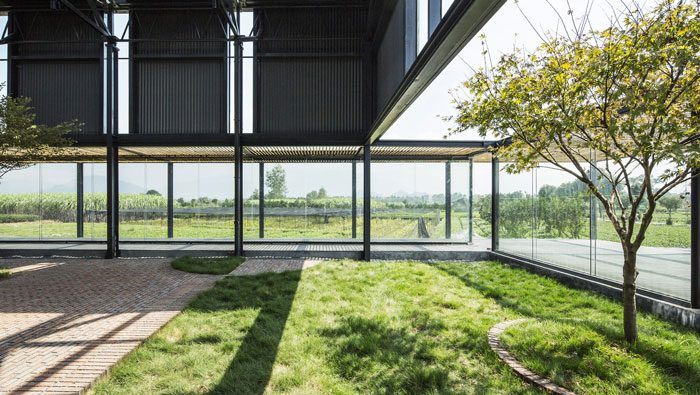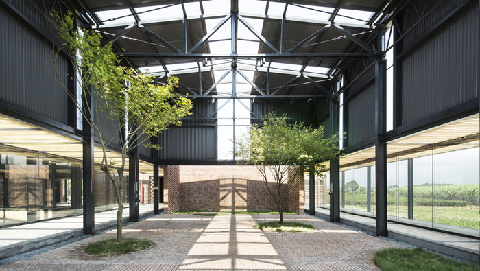 紅糖廠房景觀裝修設(shè)計:廠房位于區(qū)域的最里面,田園景觀環(huán)繞整個廠房,設(shè)計師之所以這樣設(shè)計,一來是滿足當(dāng)?shù)氐男枨螅硎菨M足環(huán)保的需要,三來是滿足旅游的需要。