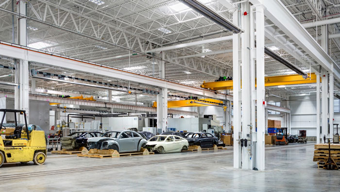 汽車工廠車間裝修設(shè)計:這里是存放汽車供應(yīng)商,提供汽車原型的地方,汽車原型在這里等待被上裝,整個空間需要保證絕對的暢通,這也是設(shè)計師設(shè)計的重心所在。