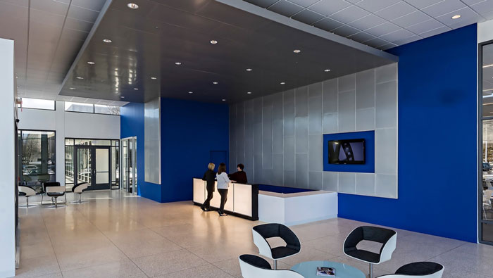 汽車工廠走廊裝修設(shè)計:走廊是辦公樓與外界連接的重要過渡,走廊既可以阻隔強烈的陽光,同時也可以起到避雨的功效,同時員工在工作之余,可以透透氣,可以稍事休息。
