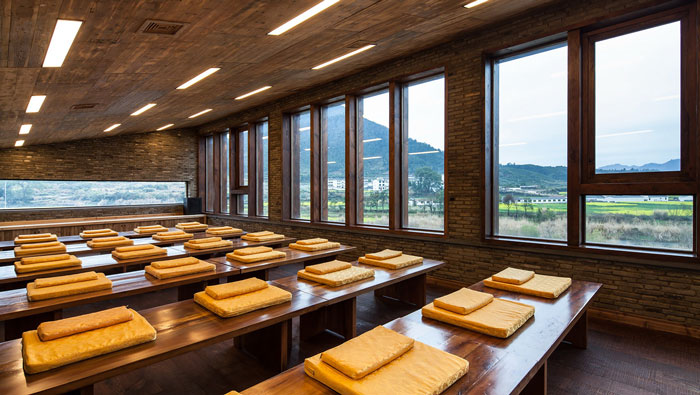 廠房走廊裝修設(shè)計(jì):古色古風(fēng)的建筑,加上外界的自然風(fēng)景,為整個(gè)廠區(qū)帶來(lái)了不一樣的感覺,這里既可以保證空間的通行,同時(shí)也可以站在這里欣賞外界的美景,一舉兩得。