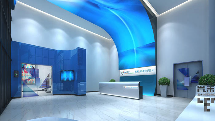 前臺(tái)大廳的設(shè)計(jì):設(shè)計(jì)師在設(shè)計(jì)的時(shí)候,采用色彩+燈光的方式對(duì)空間進(jìn)行設(shè)計(jì),天藍(lán)色的設(shè)計(jì)會(huì)令人聯(lián)想到??諢o(wú)限延伸的開(kāi)放與深遠(yuǎn),同時(shí)天藍(lán)色也有濃濃的科技屬性,這樣與企業(yè)的屬性相融合,其次就是燈光的設(shè)計(jì),燈光與色彩之間的相互搭配更能映襯出企業(yè)的實(shí)力,讓人產(chǎn)生可靠、信賴的感覺(jué)。