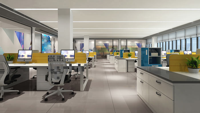 辦公區(qū)域的設(shè)計(jì):設(shè)計(jì)師在設(shè)計(jì)的時(shí)候,將空間按照4:2:4的比例對(duì)空間進(jìn)行劃分與設(shè)計(jì),中間以動(dòng)線連接各個(gè)區(qū)域,同時(shí)以動(dòng)線為中心開(kāi)始布局辦公區(qū)域,這樣可以做到空間的暢通無(wú)阻,同時(shí)設(shè)計(jì)師選用新型的隔斷辦公桌,這樣一來(lái)可以使空間的容納效果提高,另一方面在開(kāi)放空間中為員工打造屬于個(gè)人的私人空間,做到分中有合。