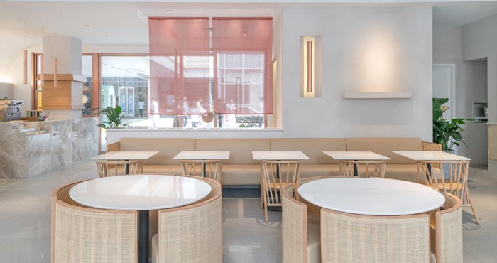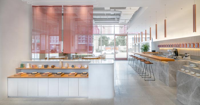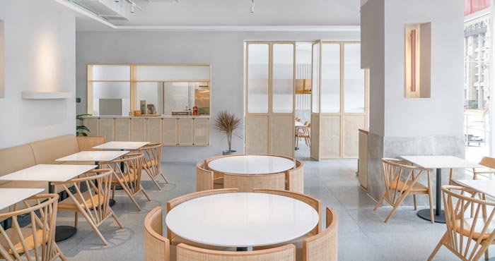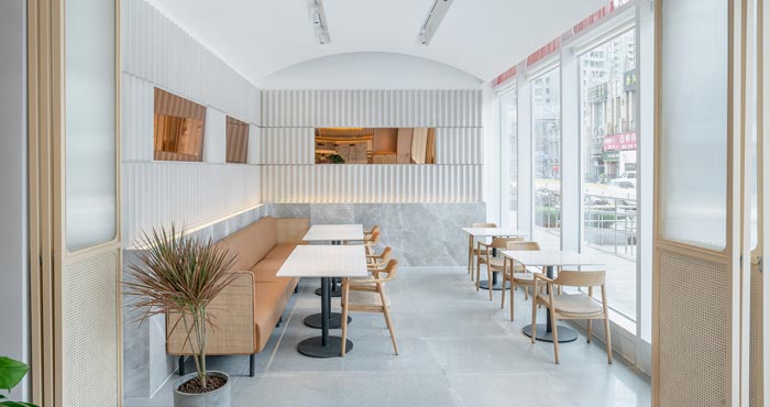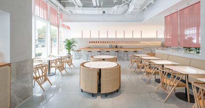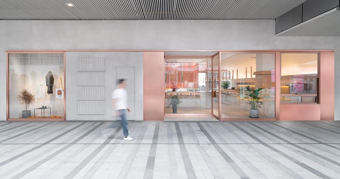 本次為茶餐廳設(shè)計(jì)項(xiàng)目,茶餐廳位于一個商業(yè)綜合體的室外一層,設(shè)計(jì)師希望創(chuàng)建一個舒緩的流線,引導(dǎo)人進(jìn)入到一個愜意的氛圍空間。