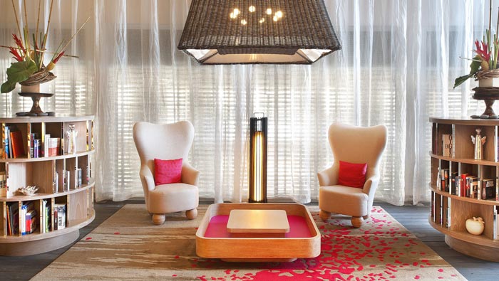 戶外客房的設計:此處位于酒店的一樓,這也是設計師的突發(fā)奇想,在我們看到客房基本上都在樓上,但是設計師認為那樣就浪費了這里的大好美景,故此設計師將客房布置在一樓的一側,此處讓顧客在室內與室外之間互相轉化,讓顧客與美景更加接近。