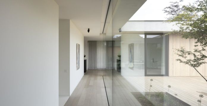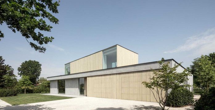 底層的支撐底座是由一種混凝土外觀的平灰泥突出的。在上面的較小體積是在木箱和包層上實現(xiàn)的。然而,這兩卷在物化上的差異似乎不難對比。畢竟,灰泥是以淺灰色進行的,它的底土和一種特殊的清掃技術也使灰泥具有溫暖的色調。這樣做,某些等級出現(xiàn),使整體看起來不那么平坦,更自然。這與大窗戶結合在一起,產生了美麗的和諧。