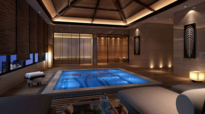 SPA與浴池的設(shè)計(jì),設(shè)計(jì)師根據(jù)會(huì)所優(yōu)越的地理位置,通過頂部的設(shè)計(jì)來收集月光,讓人在享受的同時(shí)可以感受到月光的輕柔。