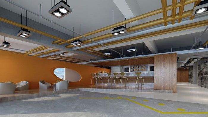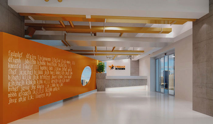 形象墻的設計,設計師采用了橘黃色,這樣會更加醒目,讓形象墻的功能作用可以得到最大化開發(fā)和利用。