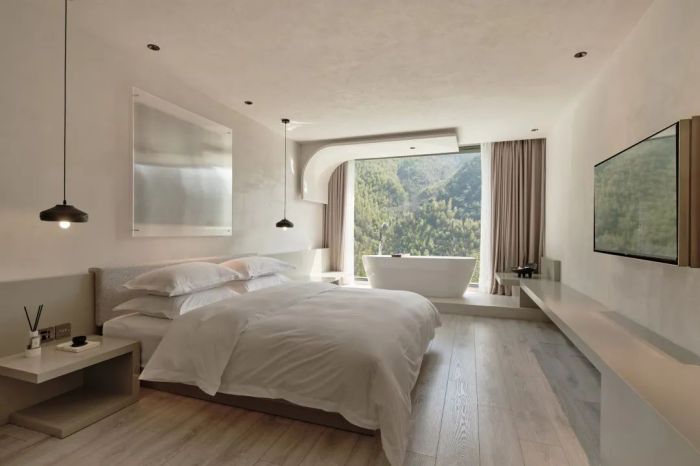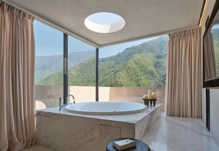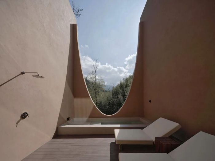 善侒酒店位于竹海山林深處,建筑設(shè)計(jì)融入自然元素,采用當(dāng)?shù)夭牧?,展現(xiàn)出與自然和諧共存的美感。酒店擁有17間客房,各自擁有獨(dú)特的風(fēng)景和設(shè)計(jì)特色,比如“赤樓”的米色墻面和流暢線(xiàn)條、“頤樓”的私享庭院以及“需樓”的巨大U型泡池。