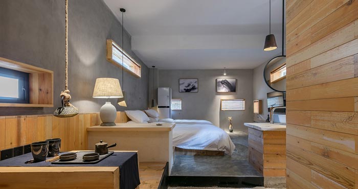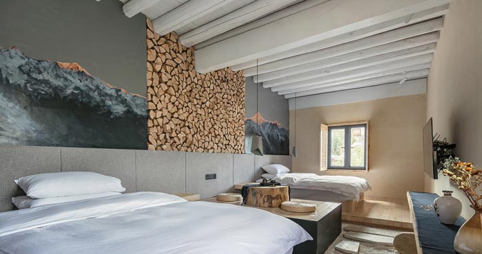 本案簡約民宿設計項目介紹結束,民宿設計加入了東方的禪意元素,然后以古城香格里拉的藏式風格自然過渡,呈現在客戶眼前的是,散發(fā)著自然之美的簡約民宿。