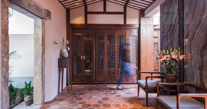 本次為民宅民宿設(shè)計(jì)項(xiàng)目,在設(shè)計(jì)中保留原建筑的柱網(wǎng)空間,同時(shí)以院落為中心,將空間劃分為四個(gè)客房區(qū)域,整體呈現(xiàn)中軸對(duì)稱的格局。