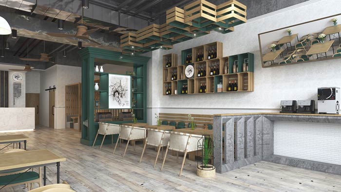 街角的咖啡店色彩設(shè)計:縱觀空間可以發(fā)現(xiàn)這里的色彩以深綠色、淺黃色為主,這里給人的第一感覺就是一種回憶的顏色,在這里大家回憶著曾經(jīng)的過往,在這里完成一次心靈的沉淀。
