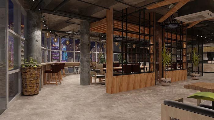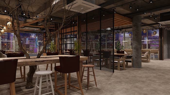 咖啡館空間裝修設(shè)計(jì):整個(gè)空間給人的第一感覺就是輕松、舒適,這也是咖啡廳的屬性所決定的,設(shè)計(jì)師希望給客戶一個(gè)舒適的環(huán)境,工業(yè)風(fēng)將自然氣息融入空間之中。