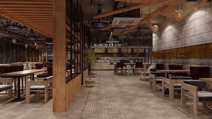 咖啡館過道裝修設(shè)計(jì):一個(gè)大回字形的過道位于空間的進(jìn)門區(qū),之所以這樣安排,是因?yàn)檫@樣的過道設(shè)計(jì),可以兼容空間的四面八方,這樣的設(shè)計(jì)可以讓整個(gè)空間使用達(dá)到最大化。