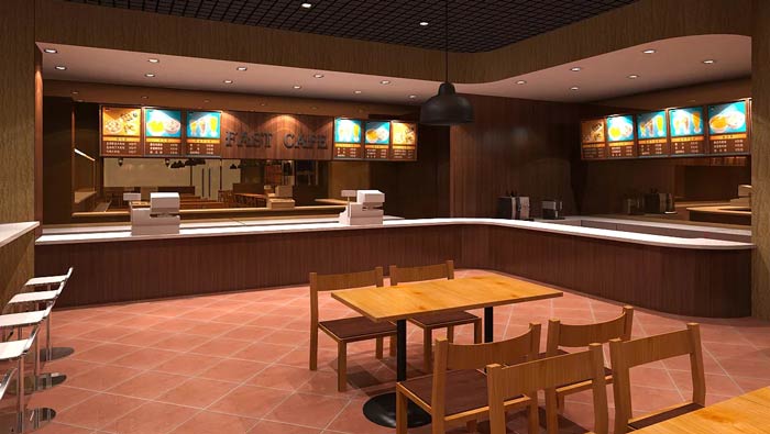快餐店餐區(qū)裝修設(shè)計:四人桌成為空間的標(biāo)配,各種形式的餐桌將空間開發(fā)到極致,正是因為這不同的餐區(qū)設(shè)計,讓整個空間有了不一樣的特色,讓快餐店也有了自己的競爭力。