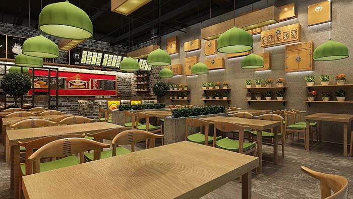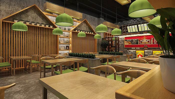 中式快餐店餐桌設(shè)計:當(dāng)客戶在等待的時候,可以看看書、玩玩手機,都是一個不錯的選擇,這樣的快餐廳氛圍,會讓客戶喜歡這里、愛上這里,以此增加快餐廳的回頭客。