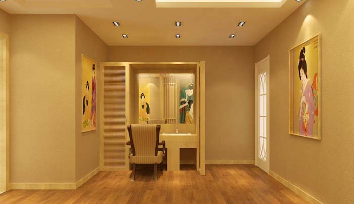 東南亞的SPA間我們用了較深的木色擦色做漆。并且做了東南亞風(fēng)格的吊頂。