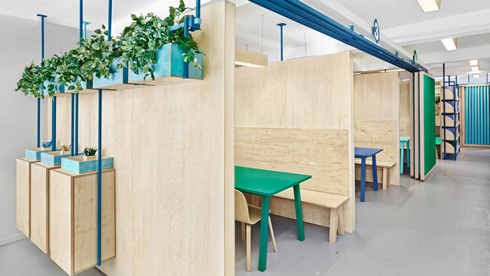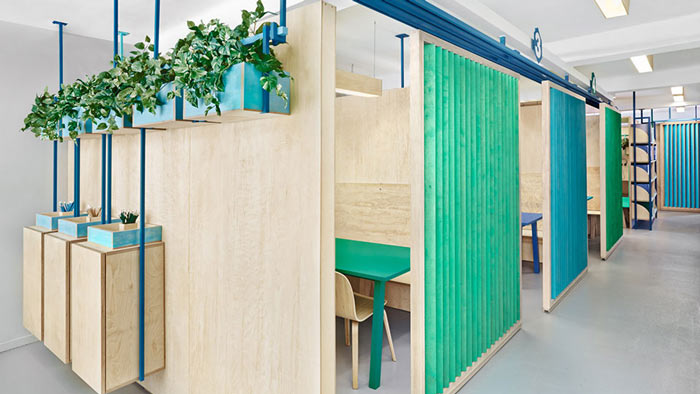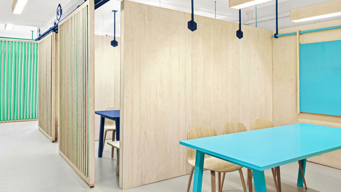 英語教育培訓(xùn)機構(gòu)隔斷門設(shè)計:此處與上圖估計第一眼都感覺是一樣的吧,其實不然,教師的門被推開了,開放與獨立皆在一念之間,設(shè)計師讓設(shè)計活了過來。