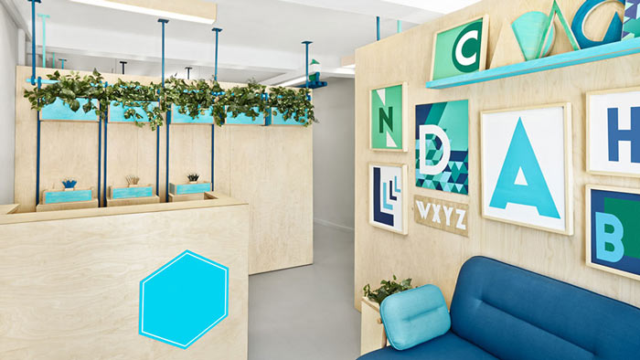 英語教育培訓(xùn)機構(gòu)接待區(qū)設(shè)計:A、B、C、D、E、F、G等26個字母,設(shè)計師以相框的方式,將其固定在接待區(qū)背后墻上,目的就是希望在潛移默化中讓大家喜歡它,這樣學(xué)習(xí)起來將會事半功倍。