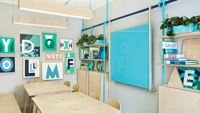 英語教育培訓(xùn)機構(gòu)教室設(shè)計:在教師格局的設(shè)計中,設(shè)計師與企業(yè)進行了深入的交流,最后雙方達(dá)到一種默契,就是教室根據(jù)學(xué)生、老師的數(shù)量進行量身定做,讓學(xué)習(xí)不再將就。