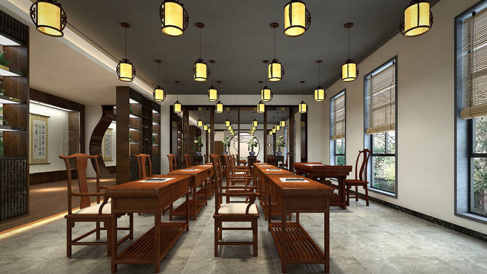 書法教育培訓(xùn)機(jī)構(gòu)教室設(shè)計(jì):在這里我們仿佛回到了古代,先生坐于堂上,學(xué)生坐于堂下,先生盡心教,學(xué)生盡心學(xué),讓我們看到了師生之情,讓我們恢復(fù)傳統(tǒng)美德——尊師重道。
