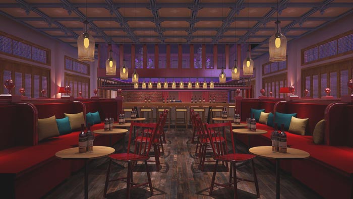 酒店大廳的設計:此處給人的第一感覺就是幽暗的空間氛圍,目的就是想要為情侶提供一個可以談情說愛的去處,讓戀人在這樣過自己的二人世界,在這里戀人之間都是竊竊私語,這樣的感覺讓人好像回到了戀愛的初期,讓彼此去回味、重溫一下當時的情景,紅酒的出現(xiàn)讓為空間增加了浪漫的氣氛。