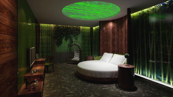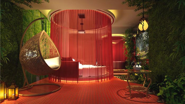 情趣客房的設(shè)計(jì):這樣的客房酒店只有2間,主要也是為了嘗試、或者說是試驗(yàn),設(shè)計(jì)師設(shè)計(jì)的目的也是為了兼具以得,同時(shí)設(shè)計(jì)師也強(qiáng)調(diào)這樣的房間不宜過多,由于文化的不同,此處也是在設(shè)計(jì)師的修改之下完成的,含蓄的美遮蓋住空間原本的含義,讓人更容易接受。