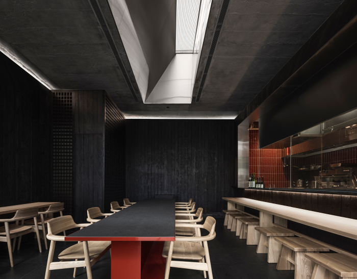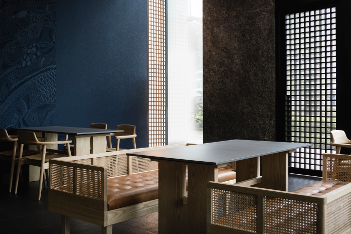 日本料理店的菜單會(huì)根據(jù)不同季節(jié)的食材進(jìn)行微調(diào),而空間材質(zhì)的選擇也反映了料理文化和空間表達(dá)的哲學(xué)理念。設(shè)計(jì)師希望通過細(xì)致把控質(zhì)感,將匠心旨意體現(xiàn)在空間的每一個(gè)細(xì)節(jié)之中。