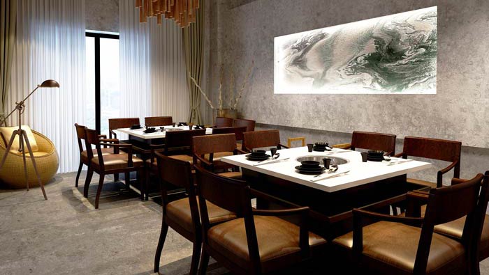 私家菜館裝修包廂設(shè)計:在這里可以一邊吃飯、一邊欣賞美景,這里給客戶的第一感覺就是靜,在現(xiàn)在發(fā)達的都市中,靜依然非常難得,這里給客戶的就是一種發(fā)自內(nèi)心的靜怡。