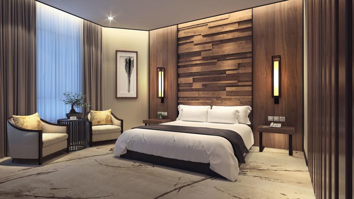 本次為商務(wù)型酒店裝修設(shè)計(jì)項(xiàng)目,設(shè)計(jì)師在于客戶的交流中,了解到客戶希望打造一個(gè)與眾不同的商務(wù)酒店,因?yàn)樵诳蛻艨磥?lái)現(xiàn)在的商務(wù)酒店總是缺少了生機(jī),雖然商務(wù)型酒店的類(lèi)型屬于商務(wù),但是歸根究底還是要恢復(fù)到人的體驗(yàn)至上,客戶希望打造一處自然、舒適的商務(wù)型酒店,打破原有商務(wù)酒店的模式。