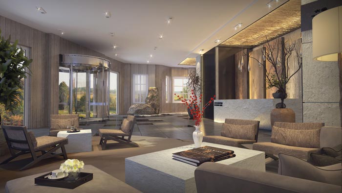 前臺(tái)的設(shè)計(jì):對(duì)于商務(wù)人士來(lái)說(shuō),有時(shí)候休息都是一種奢求,每日忙碌的工作讓我們會(huì)有一種身心疲憊之感,故此設(shè)計(jì)師在前臺(tái)設(shè)計(jì)中,加入了自然的元素,讓人在此次感受不到工作的壓力,整個(gè)環(huán)境都十分愜意,讓客戶從忙碌的生活中脫離出來(lái)。