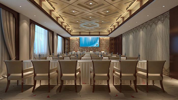 會議室的設(shè)計:此處也發(fā)揮著會議酒店的功能,在此處當(dāng)?shù)仄髽I(yè)也可以在這里進(jìn)行商務(wù)活動,此處既可以滿足內(nèi)部的需求,同時設(shè)計師也為此處插上了翅膀,因?yàn)榇说赝耆梢宰粤Ω?,此地可以提供大企業(yè)在這里進(jìn)行會談與會議,這也的設(shè)計讓酒店的功能更加齊全,同時也結(jié)合了當(dāng)?shù)氐男枨螅源诉M(jìn)行合理的設(shè)計。