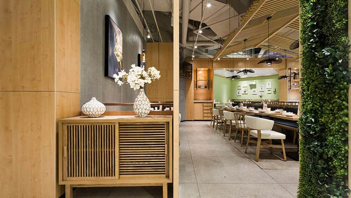 小吃店店面裝修設(shè)計(jì):綠色是空間給人的第一感覺,素雅是空間給人的第二感覺,設(shè)計(jì)師就是要改變?nèi)藗?,?duì)傳統(tǒng)小吃臟亂差的固定形象,在這里傳統(tǒng)小吃被賦予了新的生命力。
