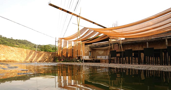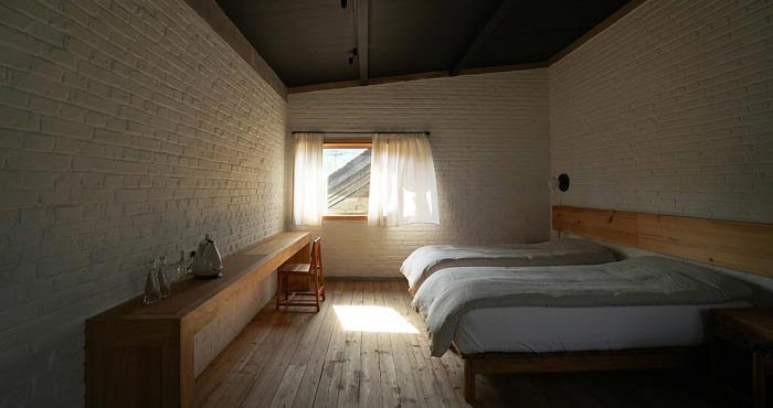 本次農(nóng)家民宿裝修設(shè)計項目介紹結(jié)束,周圍群山環(huán)繞,山泉水從門口流過,設(shè)計師在設(shè)計中小心翼翼,目的就是調(diào)和設(shè)計與環(huán)境的互補(bǔ)關(guān)系。