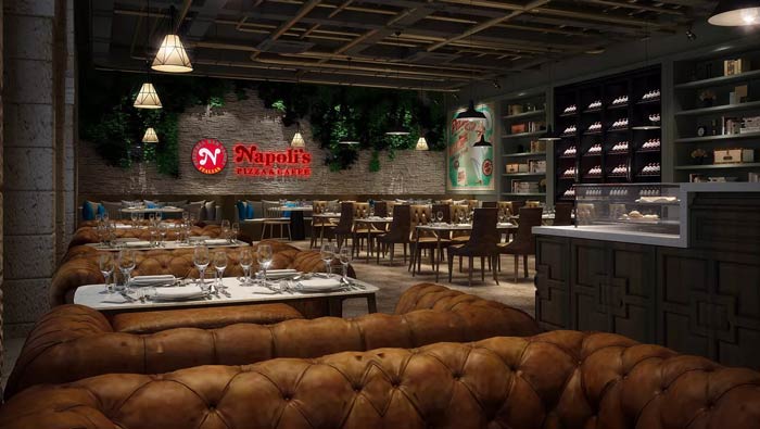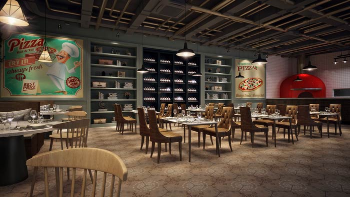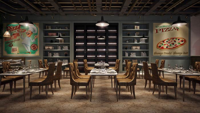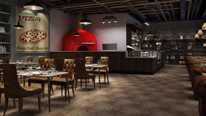 披薩西餐廳餐區(qū)裝修設(shè)計(jì):餐廳的內(nèi)部空間采用純西式的設(shè)計(jì),目的就是希望給客戶換一個(gè)場景,讓客戶可以見證不同的餐區(qū)氛圍,讓客戶在這里享受到地地道道的披薩。
